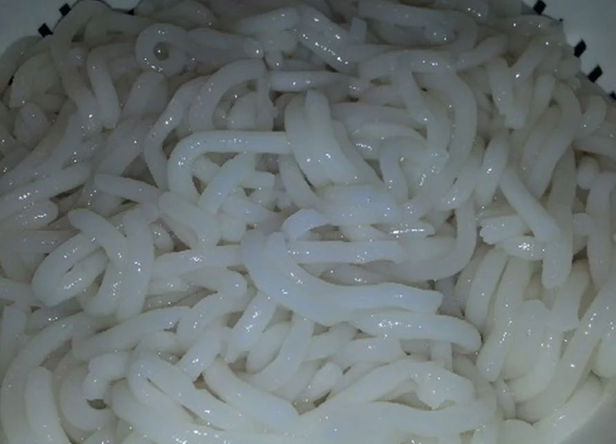 khi sợi bột nổi lên thì vớt ra ngâm vào nước lạnh.